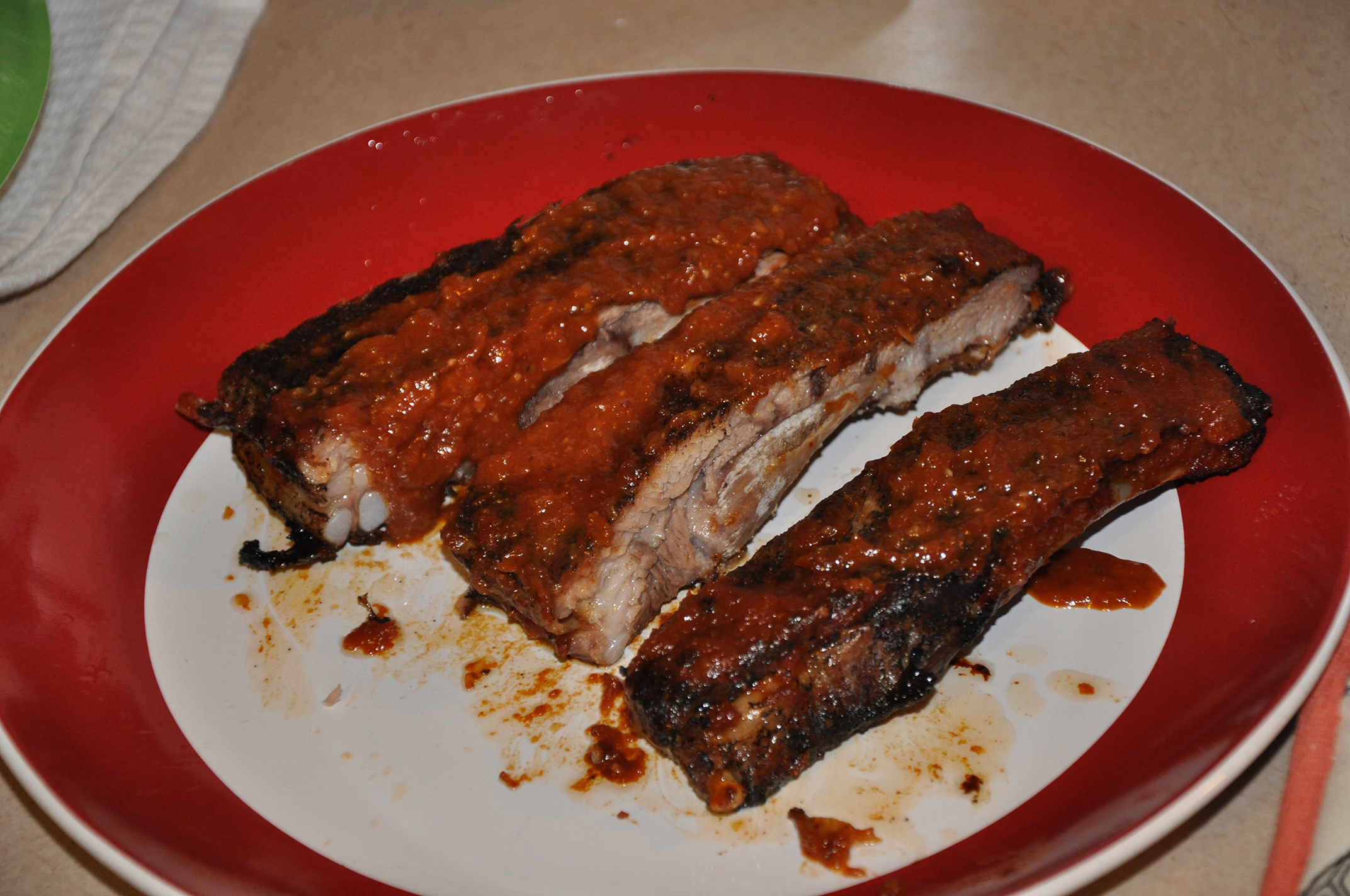 If the dip, beer, and salad were the regular season, the ribs were the super bowl of the meal. Anyone can throw a rack of ribs on the grill or in an oven for a few hours, but it’s the BBQ sauce that can really catapult the dish into something exceptional. Don’t get me wrong, there is a special place in my heart for Sweet Baby Rays. However, this sticky coffee and pepper rub added a whole new depth of flavor.