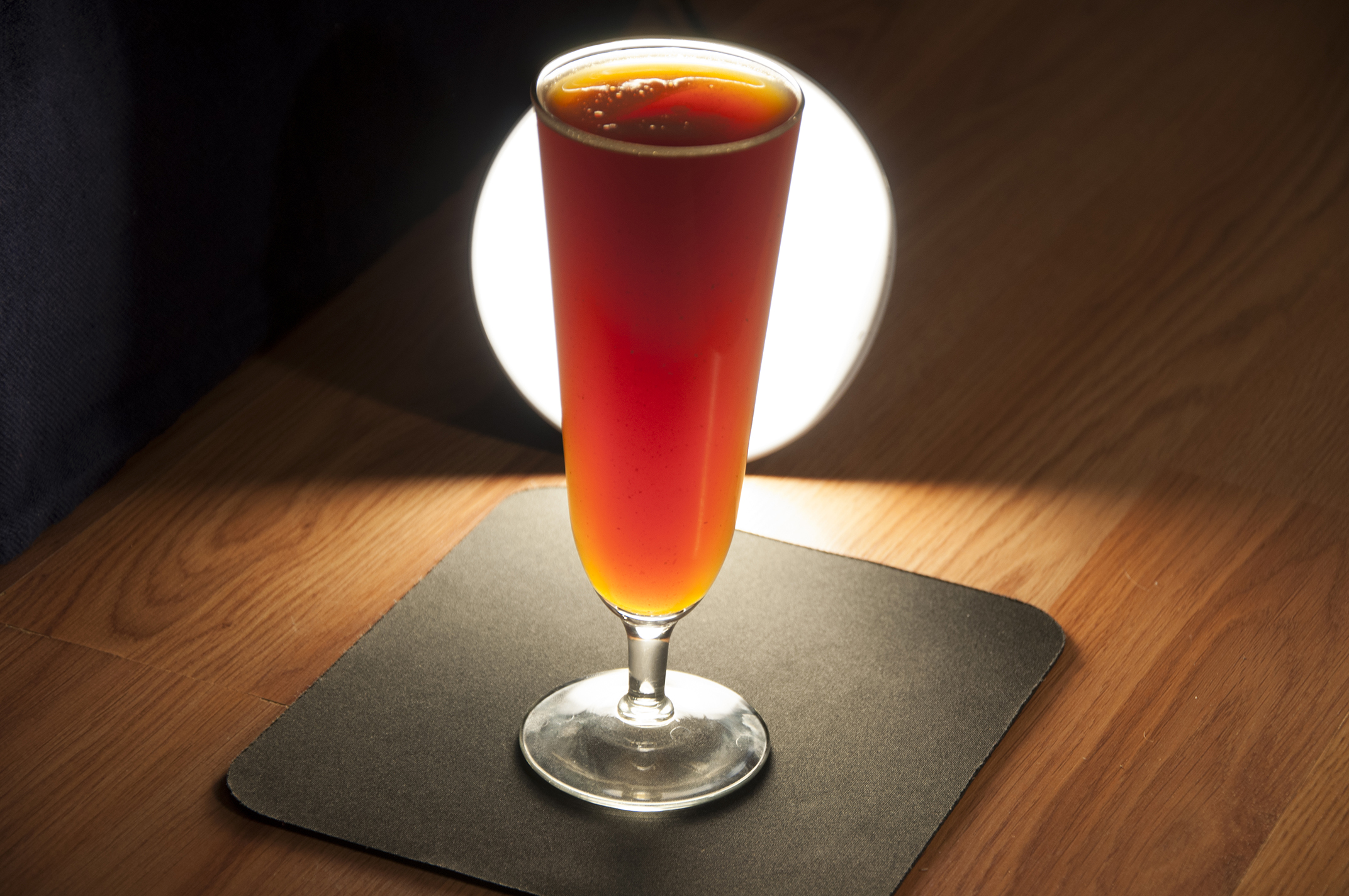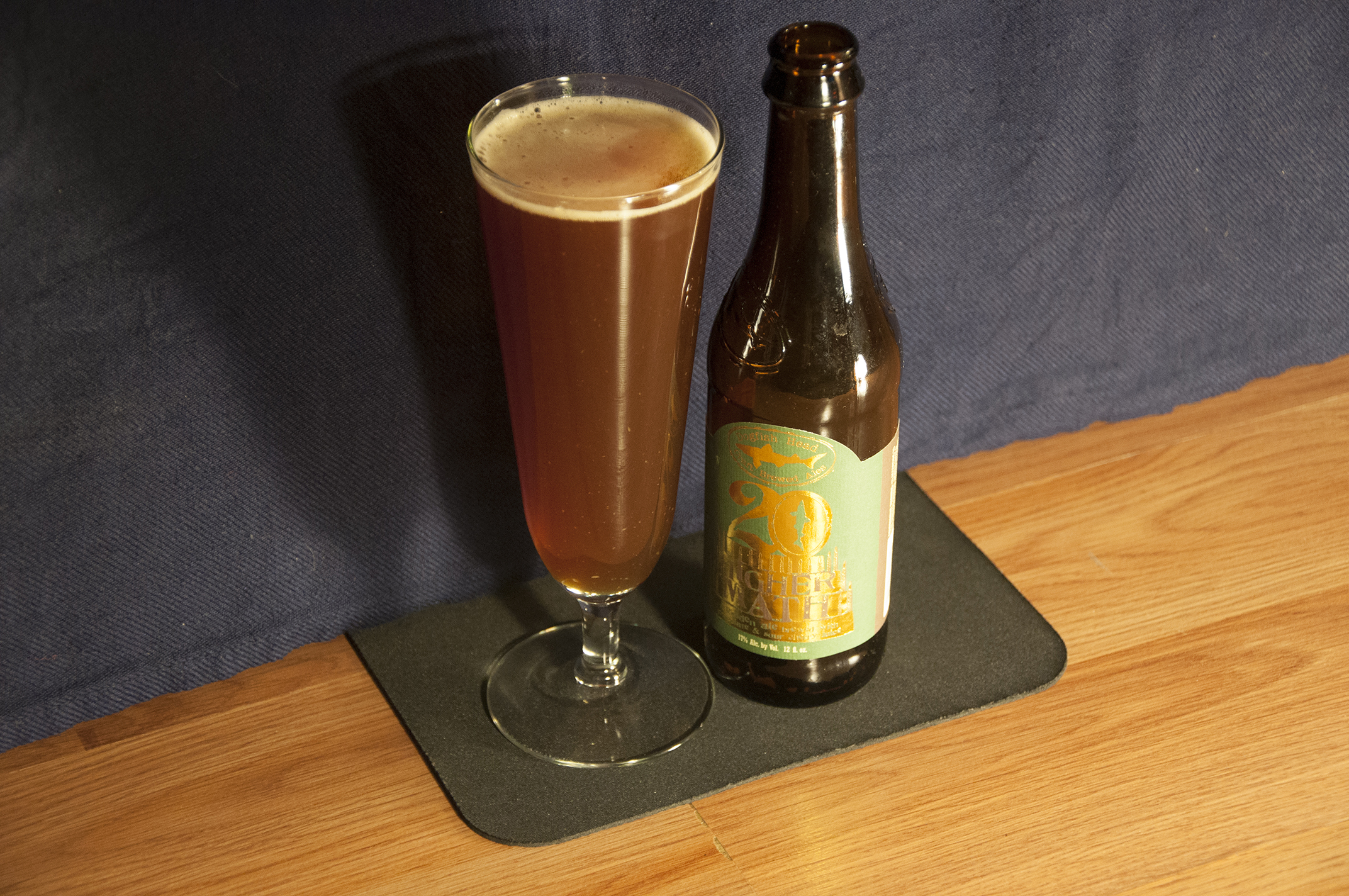 This golden strong ale is fermented with sour cherry juice and cocoa nibs and clocks in at 17% ABV.